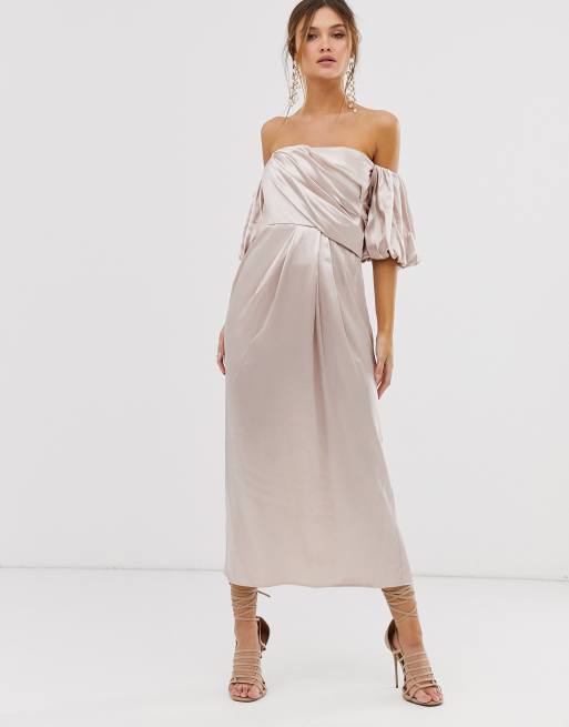 The off shoulder midi dress options available at alibaba.com come in many sizes and shapes suited for girls falling within different age groups. Sidefeel women off shoulder ruffles bodycon mini dress. Aya off shoulder midi dress. Style this dress with minimal accessories and a wavy hairstyle. After all, there isn't just one style option: As i first saw the dress, i liked the vibrant blue color of the dress. This dress has a slightly relaxed overall silhouette and runs true to size. Off the shoulder dresses are one of the hottest trends, and you can get this great look while giving high prices the cold shoulder with lulus! These cookies are necessary for the website to function and cannot be switched off. C $22.07 to c $23.16. Midi length dress with an off the shoulder neckline, duo spaghetti straps and side slits.